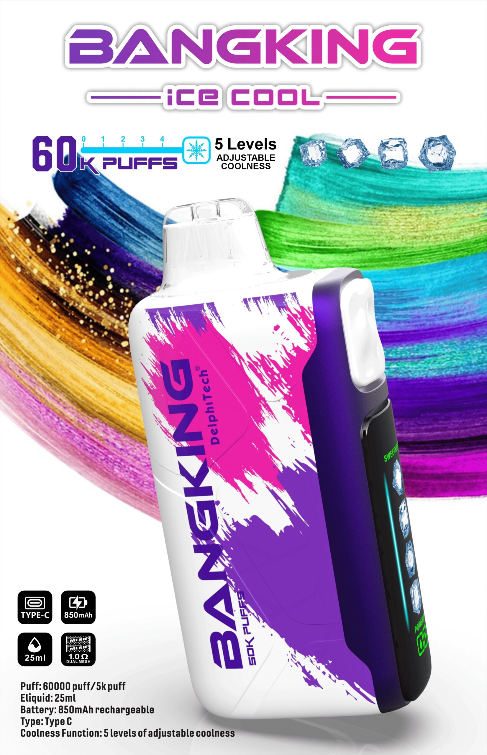 Besøg vores Startside für das komplette Sortiment, erkunden Sie die gesamte BANG VAPE-kollektionen oder vergleichen Sie alle verfügbaren Bang King Ice Cool 60000 Geschmacksrichtungen.