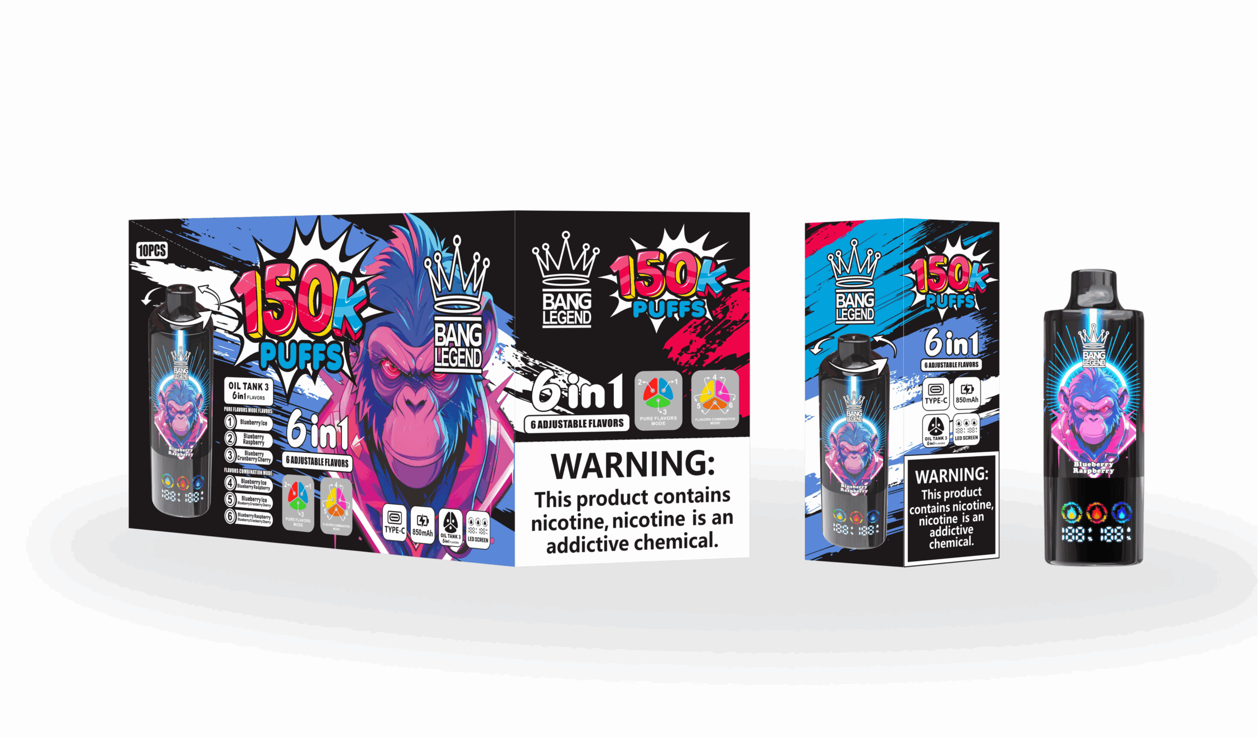 Bang Legend 150k Blueberry Ice/Blueberry Raspberry/Blueberry Cranberry Cherry engangs vape