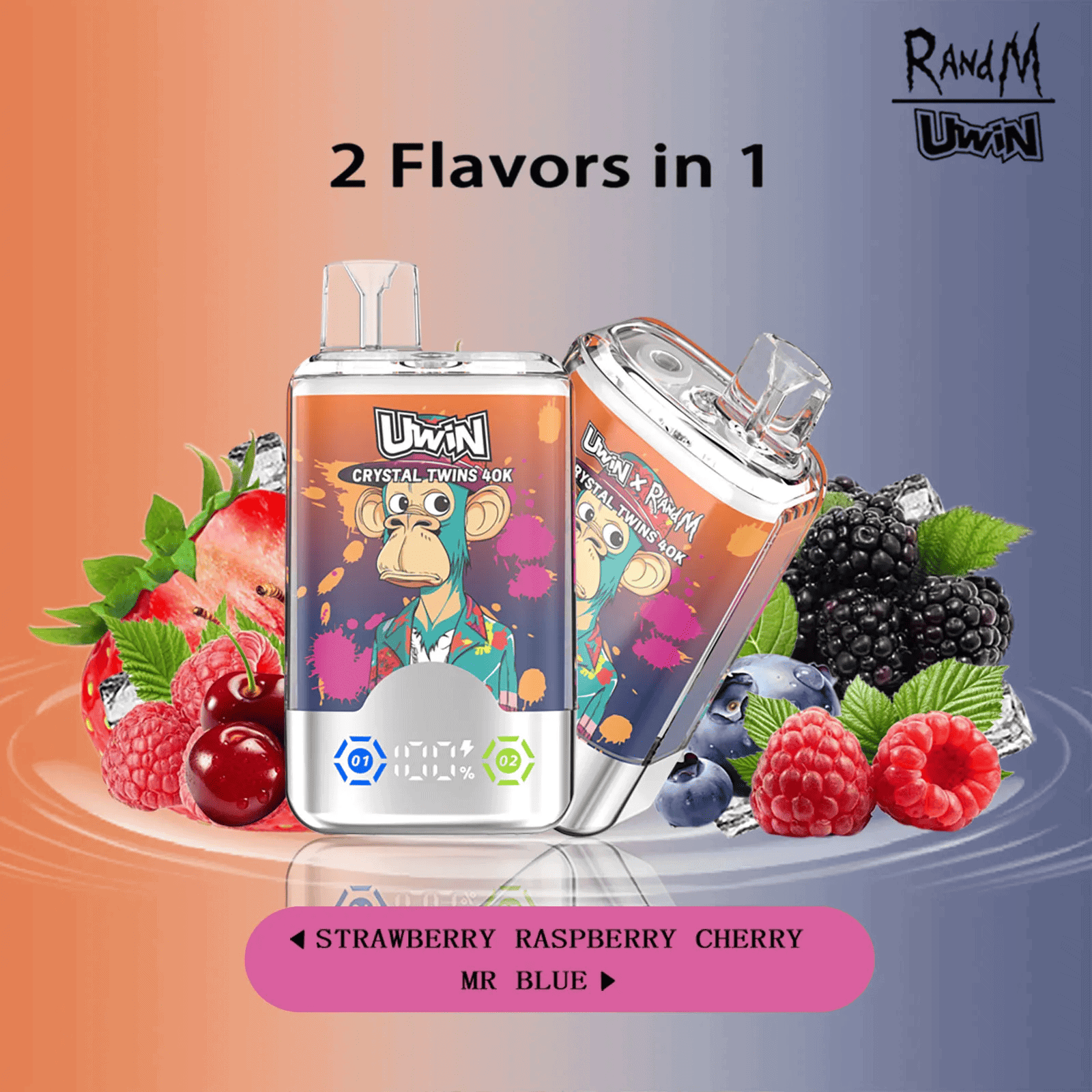 Uwin Crystal Twins 40000 Strawberry Raspberry Cherry/Mr Blue - Special features: