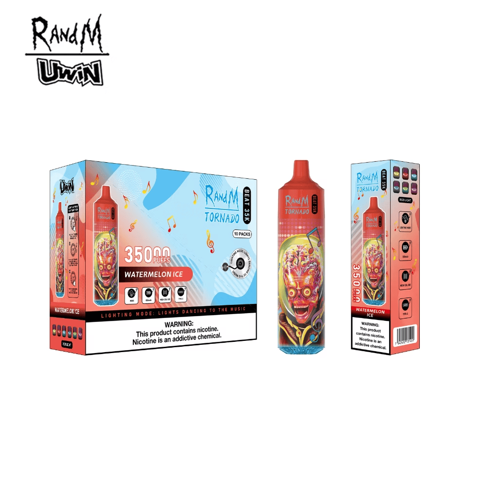 De Uwin RandM Tornado Beat 35000 Watermelon Ice biedt een sappige watermeloensmaak met ijzige frisheid. Geniet van 35,000 trekjes van 23ml premium liquid en mesh coil technologie. Beat-gestuurde RGB-verlichting transformeert muziek in lichteffecten. 850mAh Type-C batterij voor snel opladen. Verkrijgbaar in 0%, 2%, 3% en 5% nicotine - verfrissend koel en klaar.