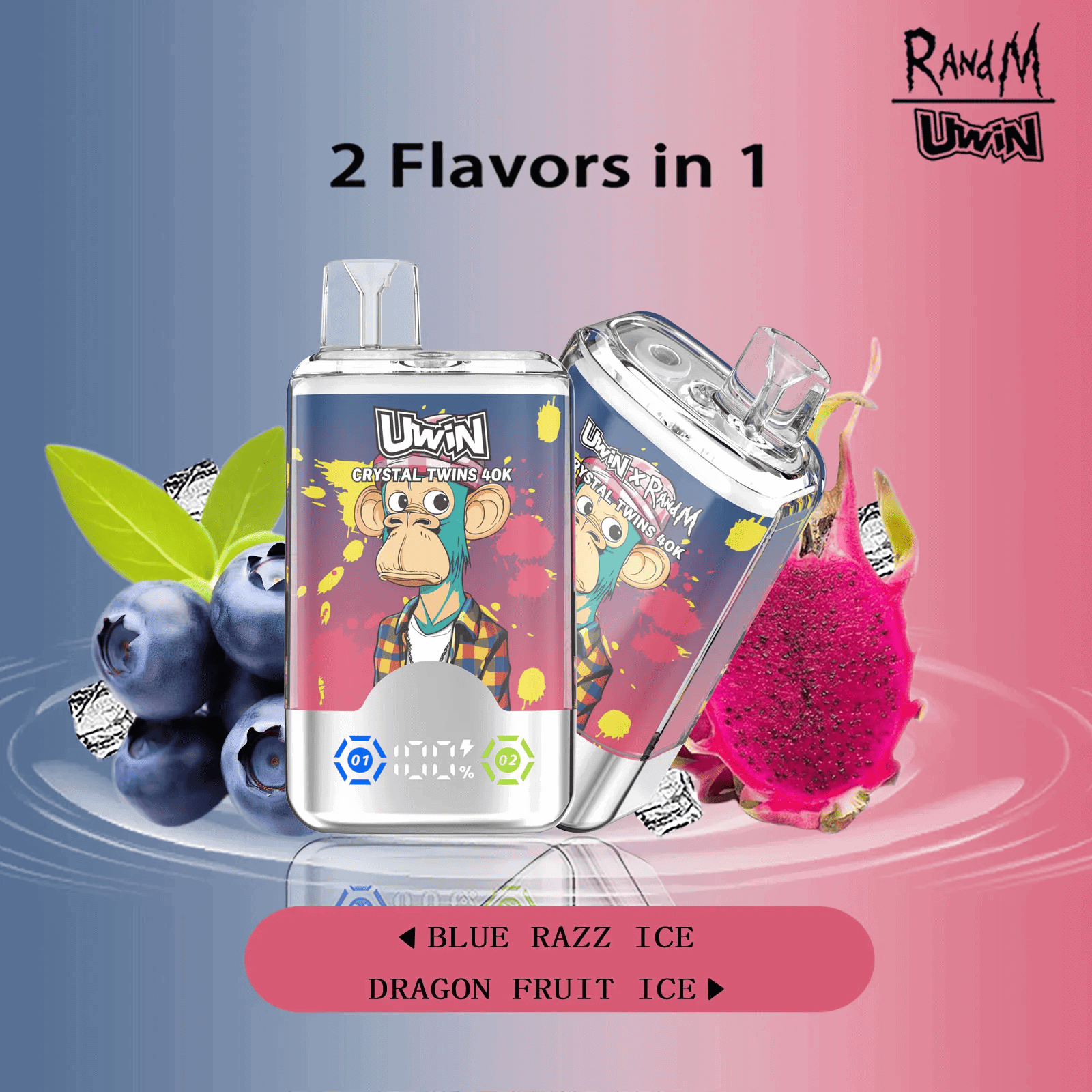 Uwin Crystal Twins 40000 Blue Razz Ice/Dragon Fruit Ice Einweg-Vape