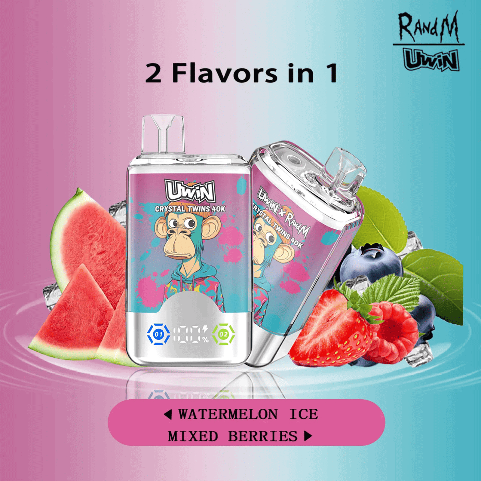 Uwin Crystal Twins 40000 Watermelon Ice/Mixed Berries Einweg-Vape