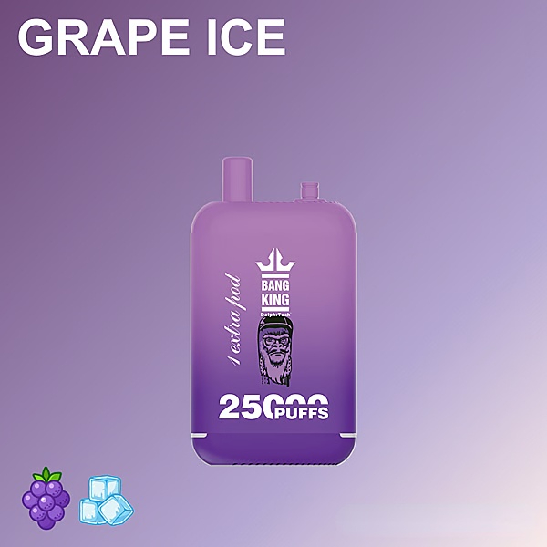 Njut av fina druvor med Bang King 25K Puffs Grape Ice! Denna toppmoderna engångsvape med dubbla kammare kombinerar söta druvsmaker med uppfriskande svalka för exceptionella 25 000 puffar. De två 23 ml-podarna (totalt 46 ml) innehåller premium nikotinsaltvätska eller nikotinfritt alternativ (0%/2%/3%/5%). Den optimerade 1,0Ω mesh-spolen garanterar autentisk druvsmak med en sval finish och voluminösa ångmoln. Det kraftfulla 650mAh-batteriet med Type-C-laddningsfunktion gör Bang King 25000 Grape Ice perfekt för fans av söta druvsmaker med en friskhetskick.